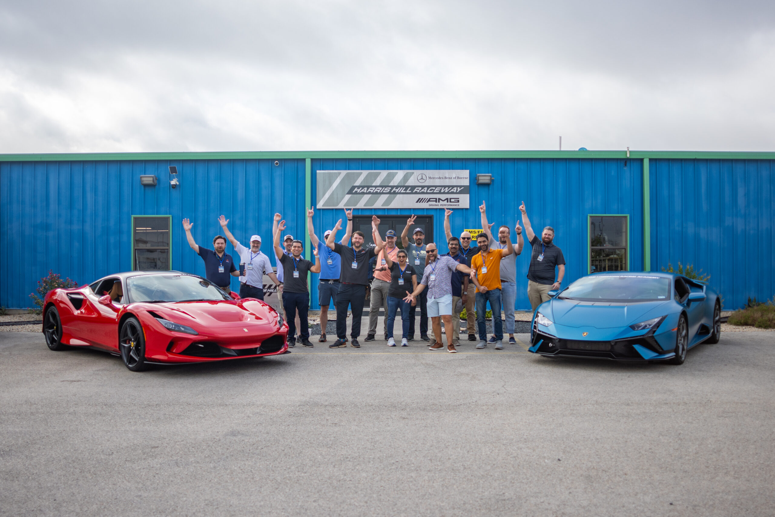 We put your guests behind the wheel of the latest Ferrari, Lamborghini, or Porsche – on a real racetrack!